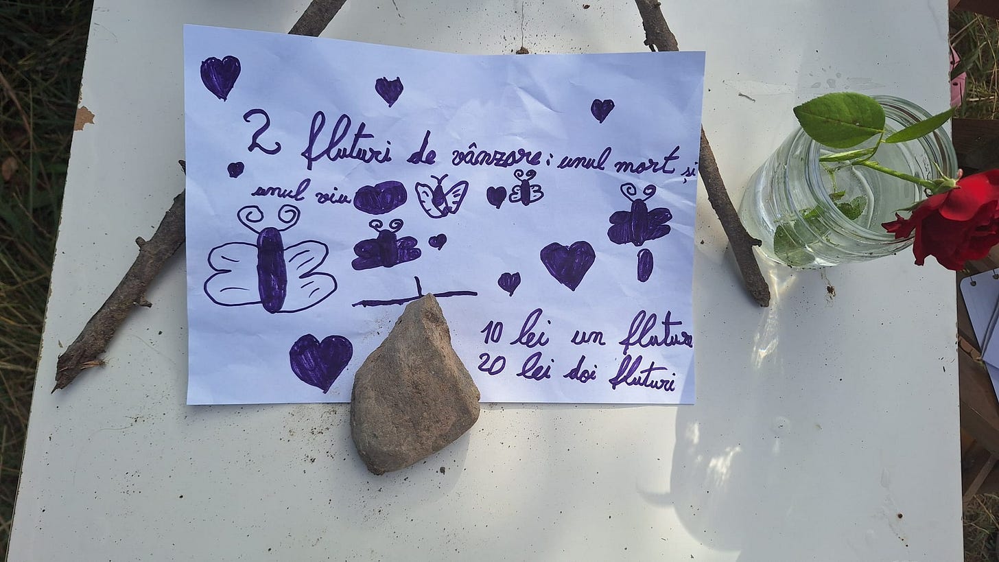 În imagine unul din demersurile antreprenoriale ale unor copile de 7 și 8 ani, de la noi din comunitate.